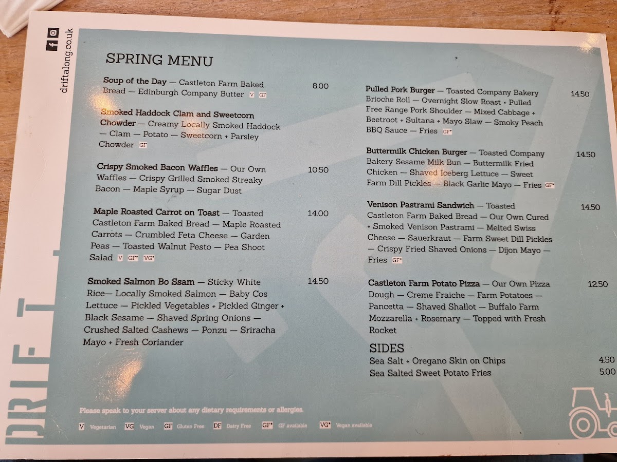 What sets the Drift Menu apart is its deep connection to the region. Everything from the cheeses to the chutneys is locally sourced, ensuring both freshness and support for nearby producers. The baking selection is another highlight: their scones are among the best in East Lothian, especially when served with cream and homemade jam.